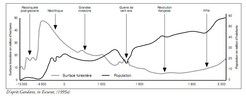 Le développement démographique considérable au cours des 6 000 dernières années s’est traduit par une régression très importante de la forêt